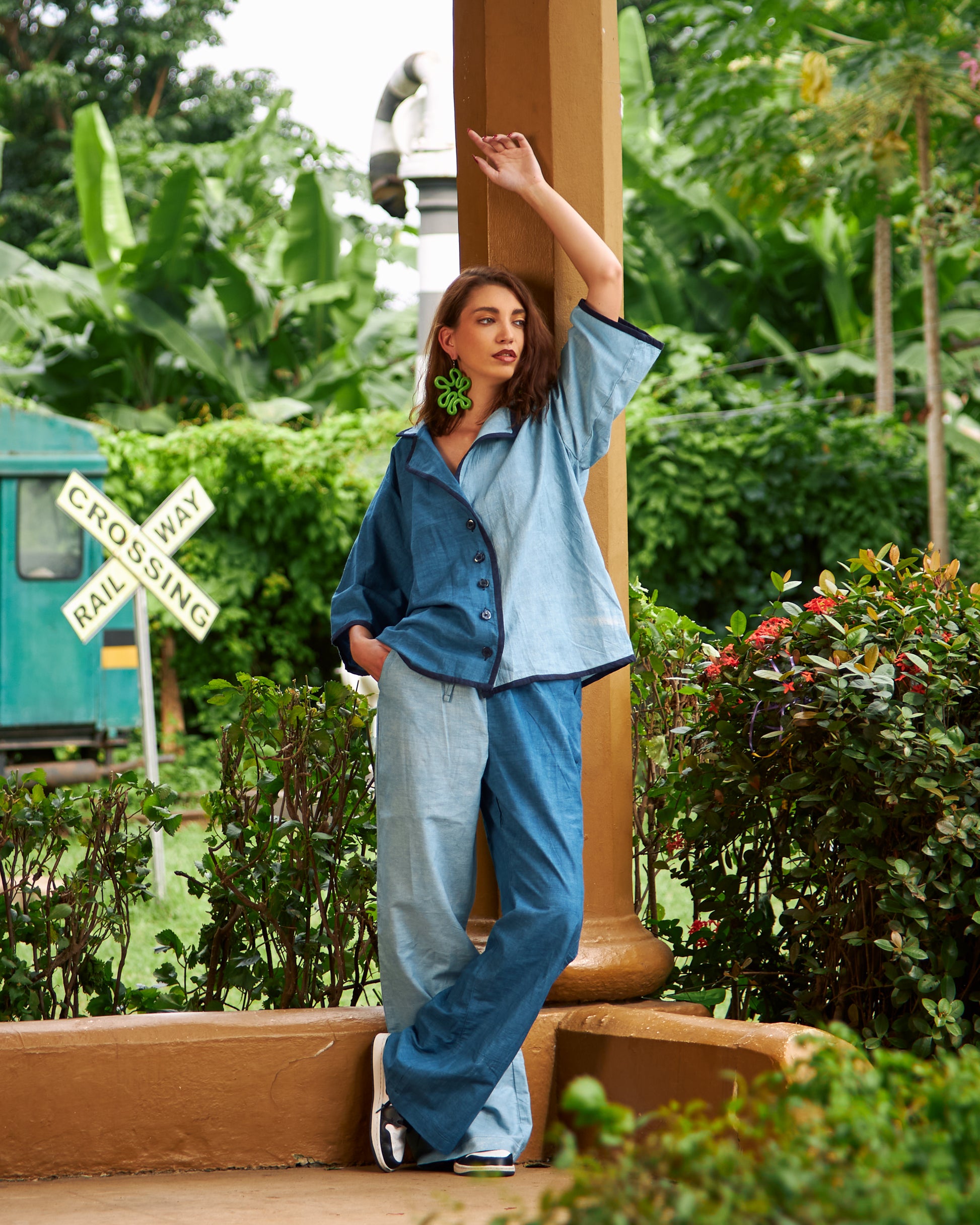 Made from 100% Funtua cotton and hand-dyed with natural indigo in two rich shades, this two-piece set pairs a relaxed button-down top with wide-leg trousers. Finished with contrast piping, it’s timeless, versatile, and proudly crafted in Nigeria.