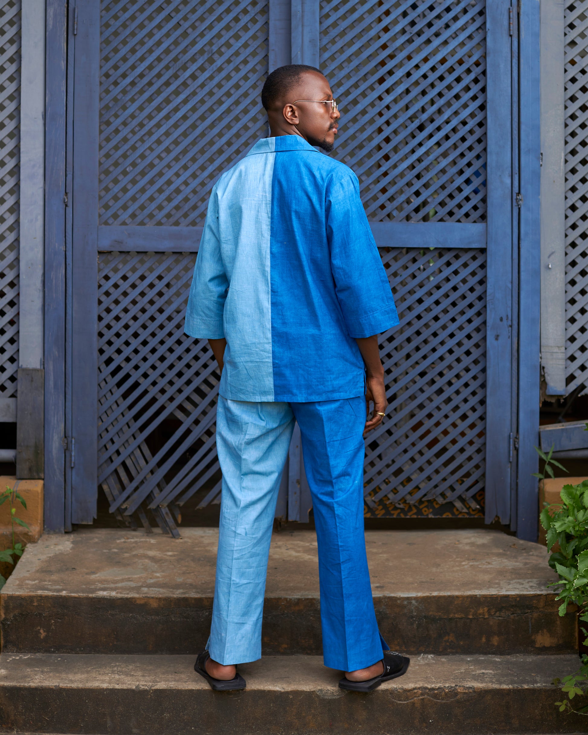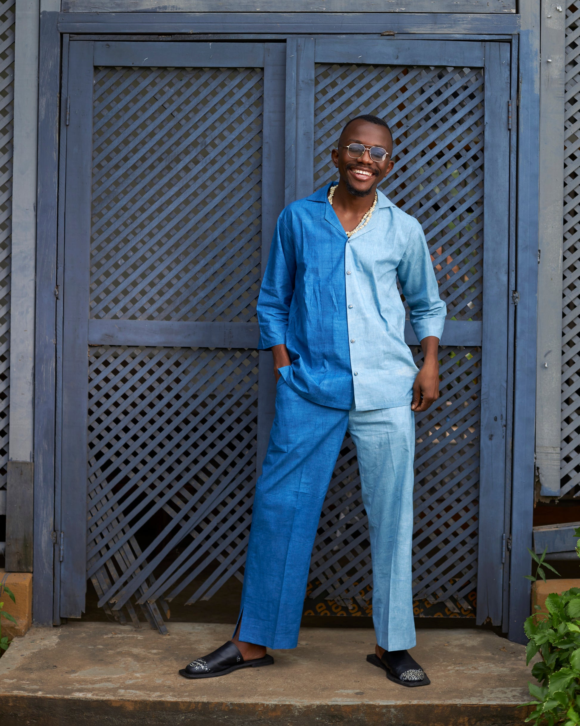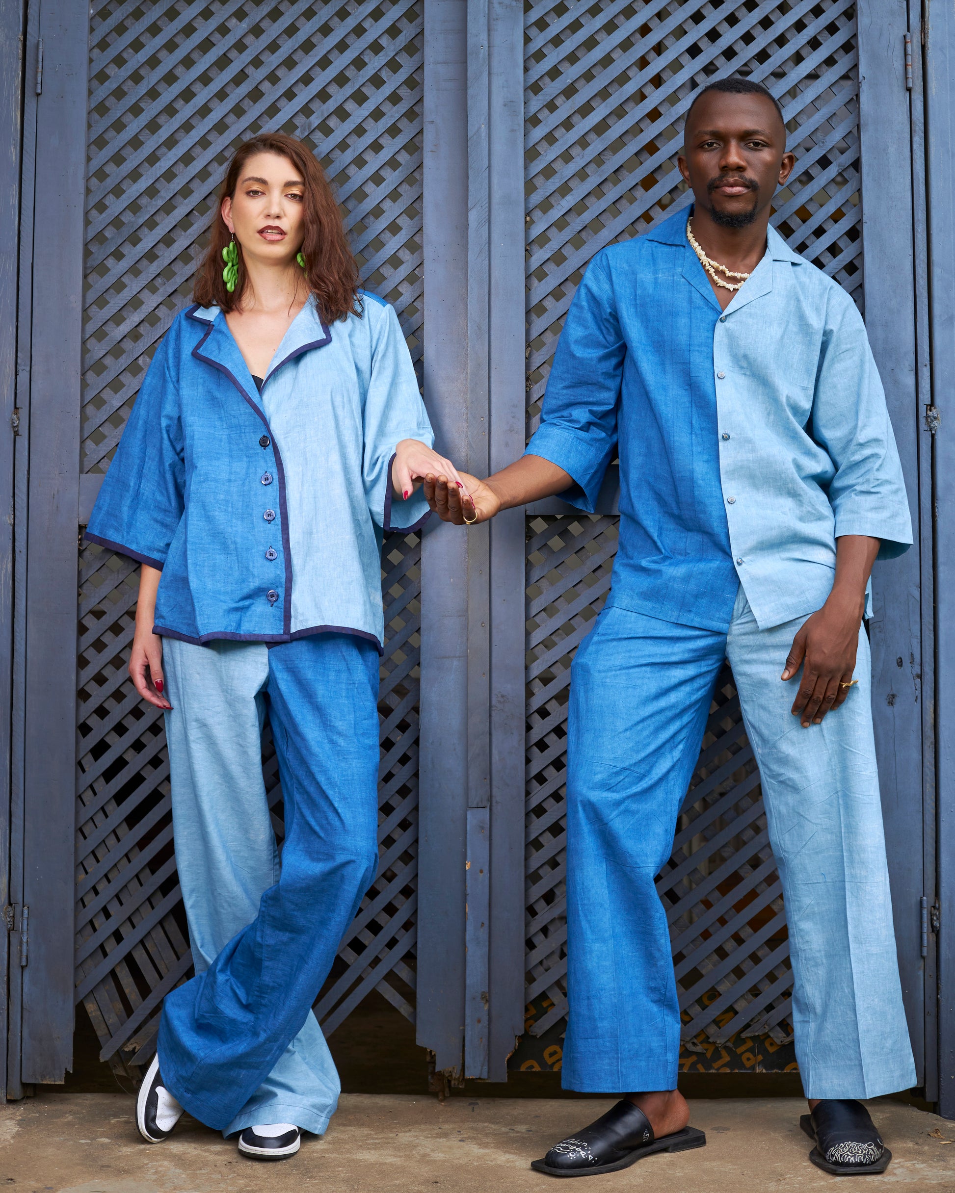 Crafted from Funtua cotton and hand-dyed in natural indigo, this relaxed-fit shirt features a striking two-tone design with a button-down front and laid-back tailoring. A versatile staple for smart or casual styling.